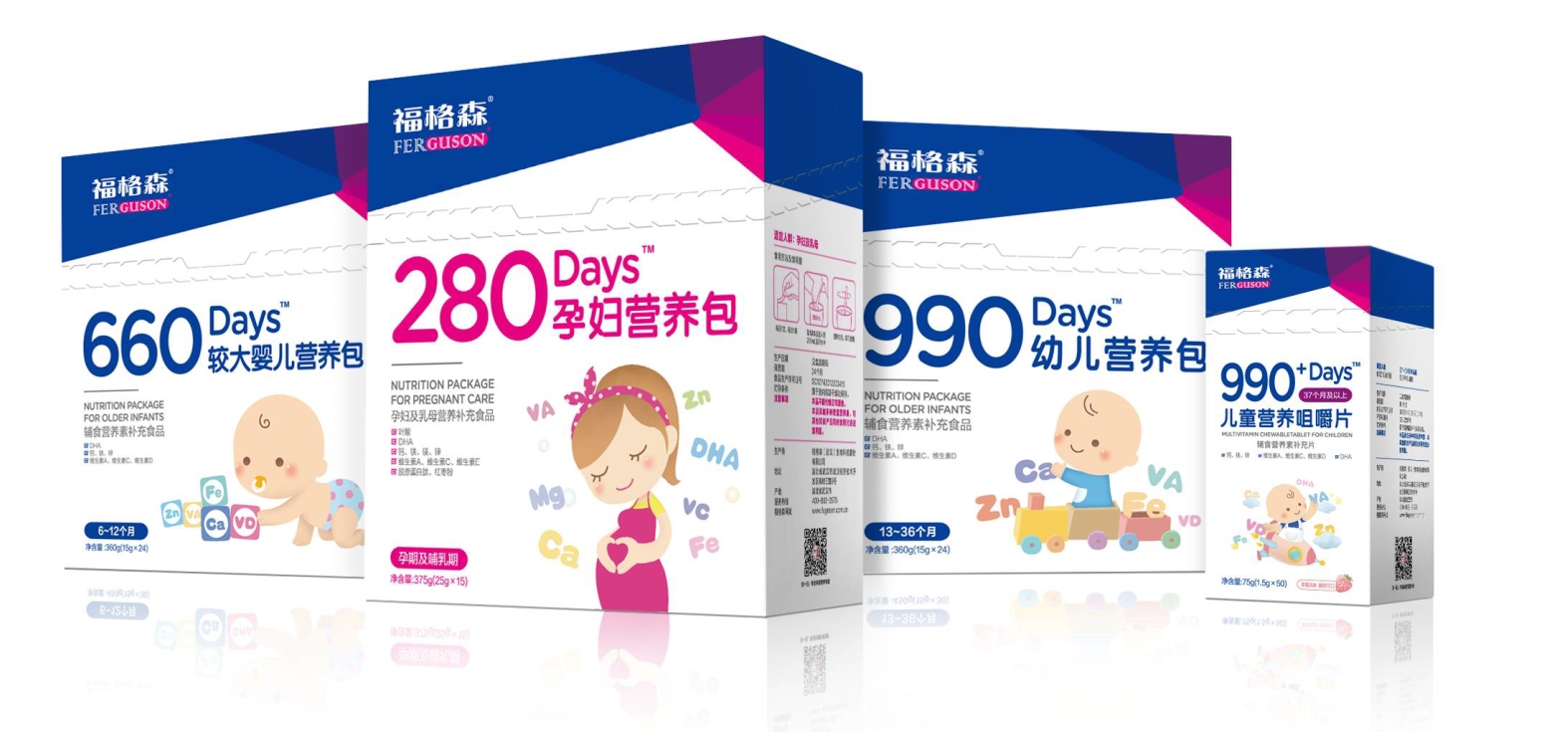 福格森黃金1000天營(yíng)養(yǎng)包,針對(duì)孕媽媽和不同階段嬰幼兒成長(zhǎng)所需的不同營(yíng)養(yǎng),推出不同的系列產(chǎn)品,富含各種微量元素,如鈉、鈣、鐵、葉酸、各種維生素等,能有效預(yù)防嬰兒出生缺陷,并幫助寶寶健康成長(zhǎng)。