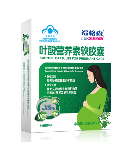 推薦理由 含有葉酸、VC、B6、B12、鐵、鋅、硒7種營養(yǎng)素 預防神經(jīng)管畸形、先天性心臟病、唇腭裂等疾病 按中國優(yōu)生學會推薦量400微克葉酸制定 軟膠囊劑型,比片劑更易吸收產(chǎn)品信息規(guī)格:30粒/盒保健功能:補充多種維生素和礦物質(zhì)適宜人群:需補充多種維生素和礦物質(zhì)的孕前、孕期及哺乳期婦女不適宜人群:無食用方法及食用量:每日一粒,飯后食用 保質(zhì)期:24個月 福格森專注孕嬰營養(yǎng)健康領域超過20年,積極參與國家“出生缺陷干預工程”項目的推廣與實施,降低中國新生兒缺陷率,為寶寶的健康成長保駕護航。公司自主研發(fā)含葉酸的營養(yǎng)素軟膠囊被計生系統(tǒng)多年推薦為出生缺陷干預工程指定產(chǎn)品。 福格森肩負“健爾體魄,興我中華”的企業(yè)使命,此次與《月嫂先生》的傾情合作,更主要的目的是呼吁大眾對孕婦及寶寶營養(yǎng)健康問題的關注,為新生嬰兒的健康成長保駕護航。